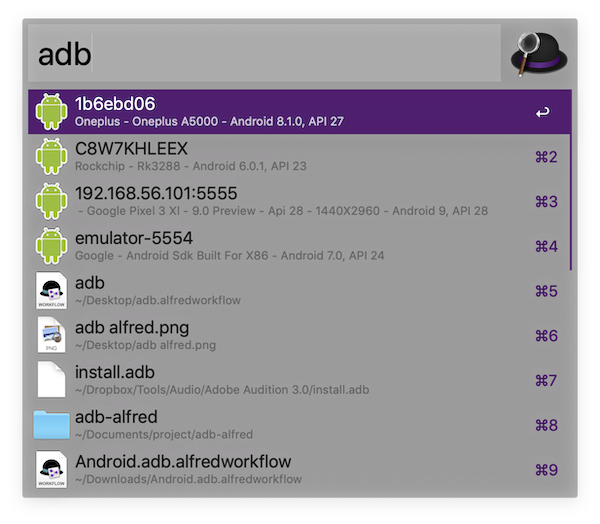 adb with alfred workflow