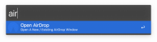 Compared to hackish solutions that require AppleScript such as this and this, this simply executes airdrop.app directly, giving you the same experience as what you'd get when you type airdrop in Spotlight, e.g. it won't create duplicates if you already have one or more AirDrop windows or tabs opened, and lauching AirDrop won't bring all Finder windows to the front.