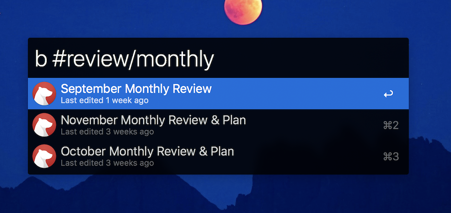 Allows you to quickly search for and open Bear notes from Alfred. It will search tags, note content, titles, etc. to try to bring you the best match.