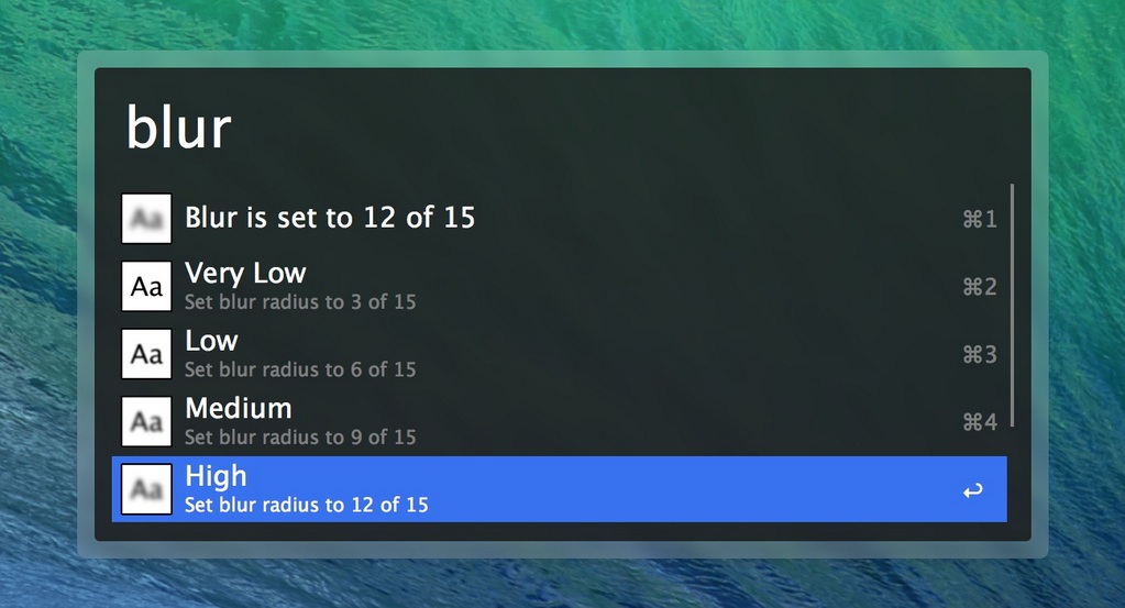 Set Alfred's blur radius. Supports 5 presets for ease of use: