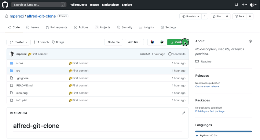 - Open Alfred and start typing the keyword clone to trigger the workflow.