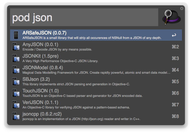CocoaPods.alfredworkflowfile to install it into Alfred. -