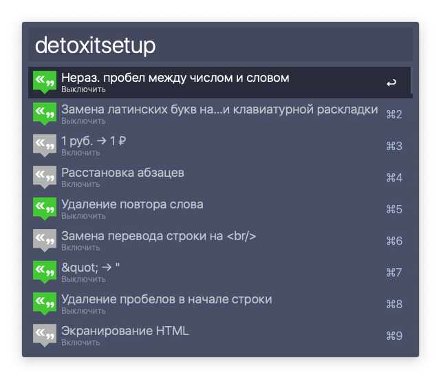 Detoxit! обрабатывает текст в буфере обмена. Копируем грязный текст (