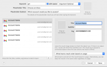 Open the List Filter and replace the Titles with your account names. Then, replace the Args with your Gmail addresses.