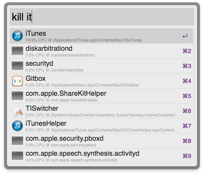 killinto Alfred followed by a space. - Begin typing the name of the process you want to kill.
