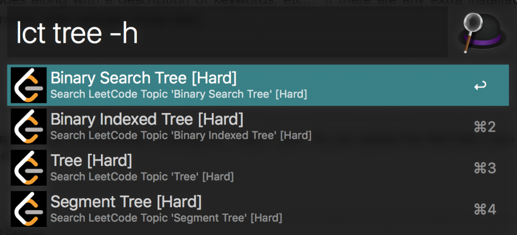 LeetCode Search is an Alfred Workflow plugin for searching algorithm problems in LeetCode with custom options.