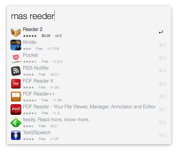 Additional keywords allow you to open the App Store app's Purchases (“masp”) and Updates (“masu”) tabs.