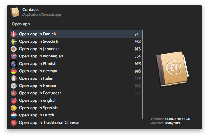 Quickly open any app in another language (e.g. Contacts in Danish, CoverScout in German…)