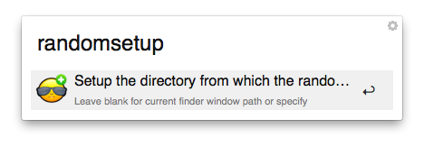 To setup your directory just type "randomsetup full_path_to_your_directory", or even better, type only "randomsetup" and your frontmost Finder window's open directory will be selected**
