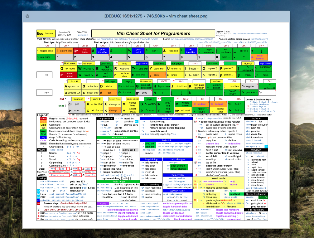 Shows a cheatsheet for vim using