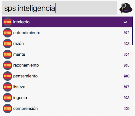 Just type "sps" on Alfred and a list of sysnonims (shall they are found) will be displayed. The user can preview (by clicking Shift) or can open the page in https://www.sinonimosonline.com/ with more detailed info about the synonym.