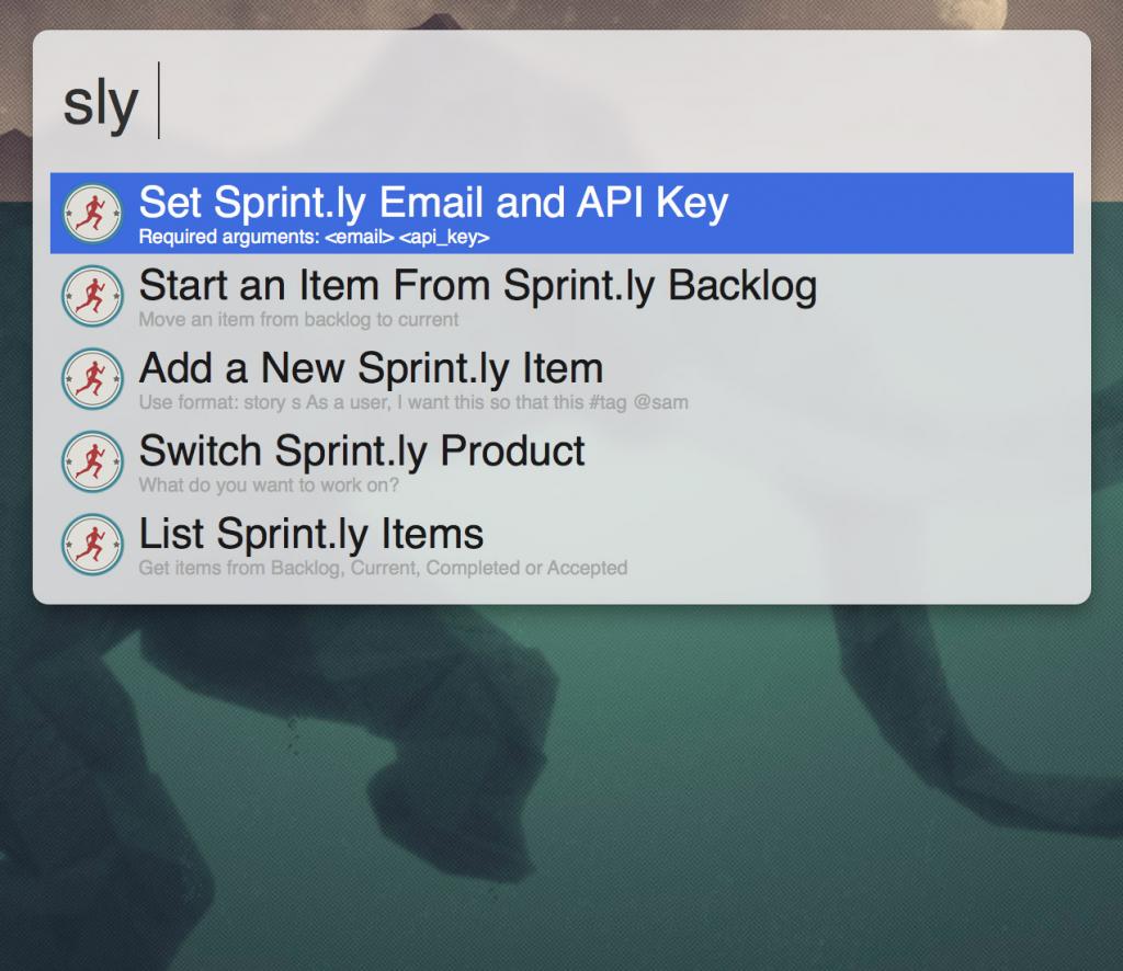 sly setup {email} {api_key} - Your API key can be obtained from https://sprint.ly/account/profile/