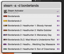 Options: -a / --all list all games for all platforms -d / --dlc include DLC in the list -i/--installed only show installed games -u/--user [username] link to this steam community library (use your steam community name, not your signin name!)