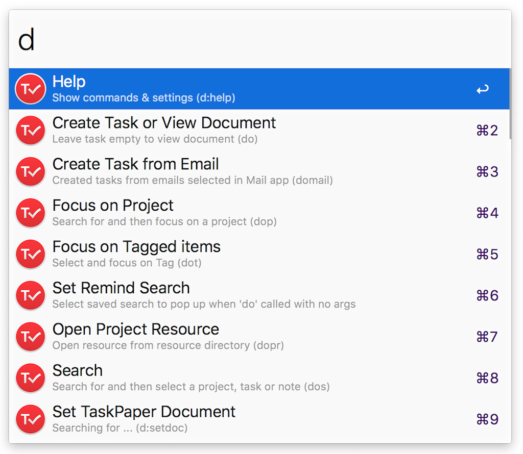 doto open the workflow’s TaskPaper document. (Also used to create a task —see below.) -