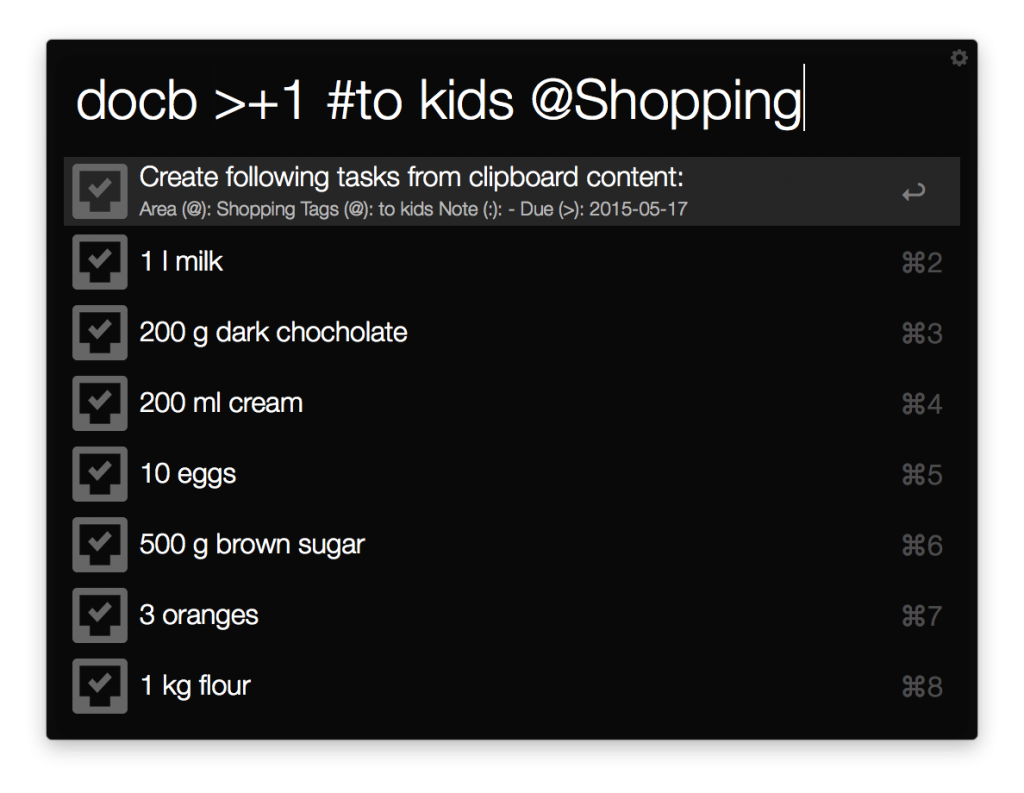 1.1.5 + docb command to convert a plain textfile list from clipboard to Things to-do items. Handy when your kids do not want to use your favorite to-do app :)