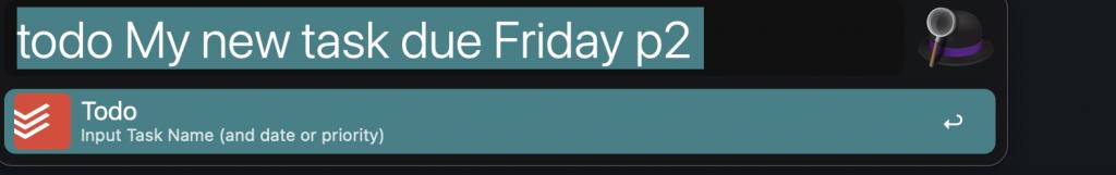 I previously used the https://github.com/moranje/alfred-workflow-todoist workflow, but the structured format was offputting, and it began to truncate many of my tasks after the last update (so I would get tasks in my Inbox that only contained half of what I had entered). Since my primary workflow requires fast input of a single entered string, I went looking for a new solution, and I found a great CLI app that adds tasks extremely efficiently here (https://github.com/alanvardy/tod)
