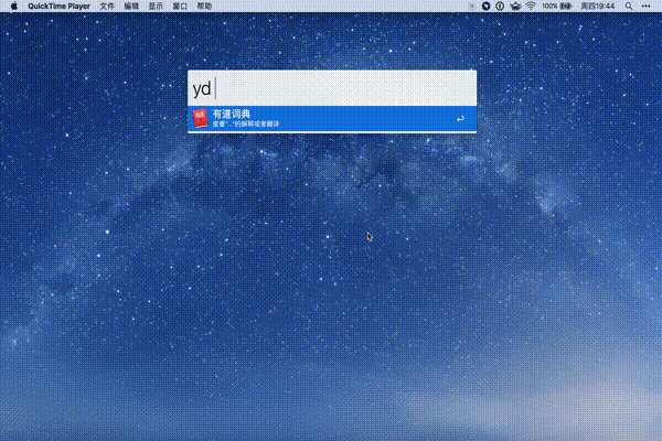 yd {query} - 支持屏幕取词功能, 需要先在Alfred Workflow中设置热键